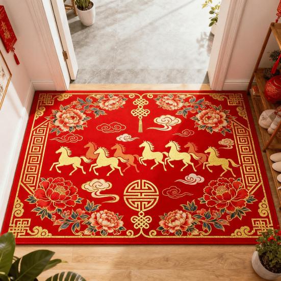 Новогодний коврик для двери Лошадь 2026 год Год Лошади Коврик для пола Красный Китайский стиль Впитывающий Противоскользящий Коврик для дома Вход Кухня Декор Весеннего фестиваля — купить товар онлайн с бесплатной доставкой по всему миру!