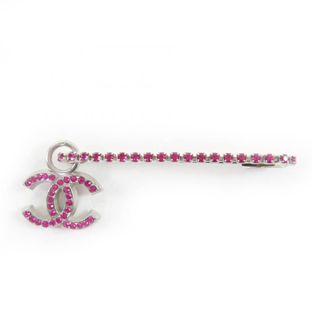 Great CHANEL Brooch COCO Mark Safety Pin Pink Silver metal Women 02P Used