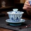 Большой расписанный вручную сине-белый керамический гайвань