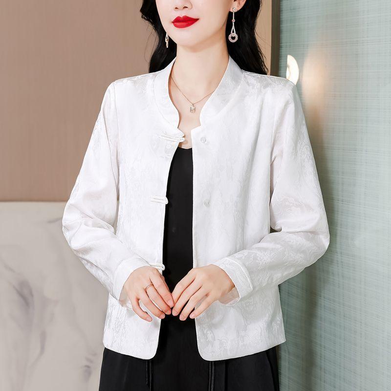 Новый китайский стиль, воротник-стойка, застежка на пуговицы-тарелочки, модный повседневный жаккардовый топ с длинным рукавом для весны и осени