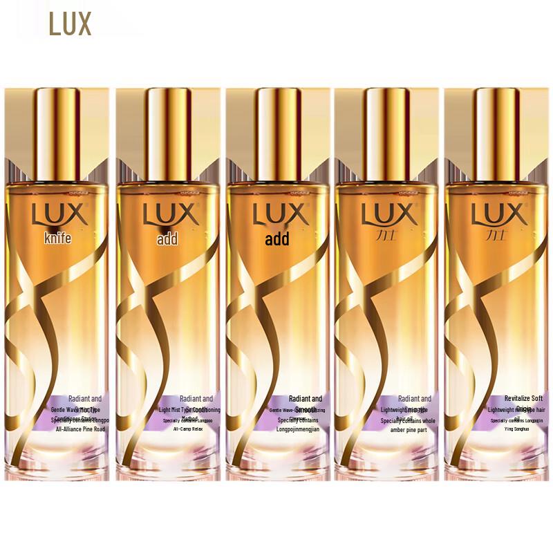 Indulge your hair with the LUX Amber Gold Light Mist Hair Essence Oil. Specifically formulated for severely damaged hair, including frequently dyed or permed hair, this essence oil deeply nourishes, brightens, and smooths, restoring a beautiful shine. This value pack includes 5 bottles, each containing 80ml, ensuring long-lasting hair care.