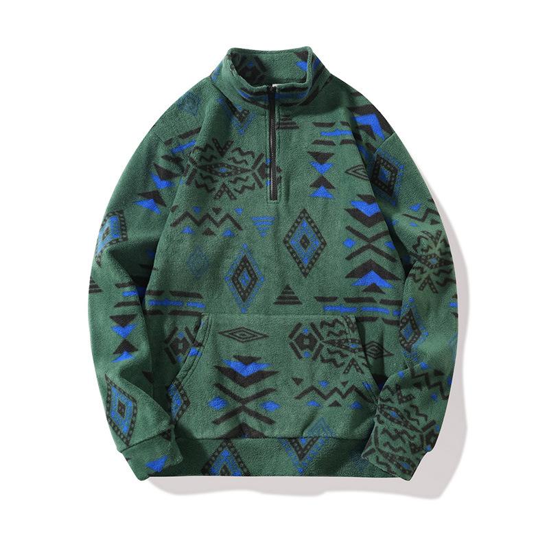 Горячий стиль Толстовка свободного кроя на молнии до половины для мужчин Зимняя утепленная повседневная толстовка с узором для мужчин