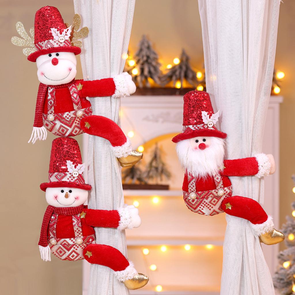 Рождественское украшение-подхват для штор, Рождественская креативная штора, Пожилой человек, Снеговик, Мультяшный подхват-кукла
