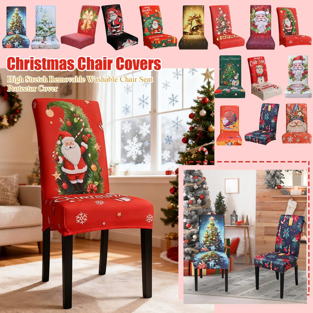 Рождественские чехлы на стулья, Высокоэластичные Съемные Моющиеся Чехлы-протекторы для сидений стульев Для Рождественского украшения Декор на Рождественскую тематику