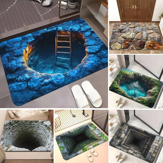 Инновационный дизайн 3D-оптической иллюзии: Этот ковер с потрясающим 3D-визуальным эффектом пещеры превращает обычные полы в захватывающие сцены с замечательной глубиной и реализмом.. Передовая техника печати добавляет художественный штрих и создает захватывающую атмосферу, которая поднимает декор вашего дома на новый уровень.