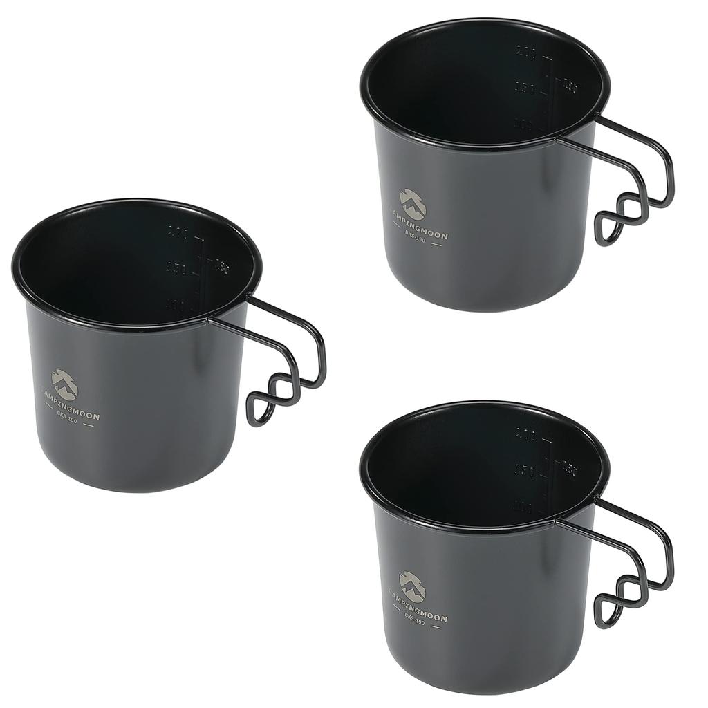 CAMPING MOON Solo Mug M Camping Mugs, Black, 3-Piece Set, 210ml SOLO MUG BKS-190-3P