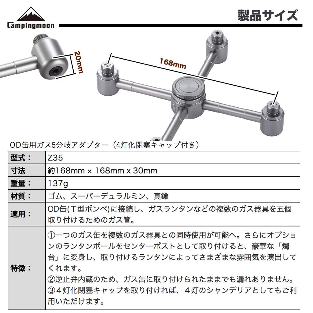 CAMPING MOON OD Адаптер для газового баллона 5-в-1, Газовая свеча, Газовый фонарь, Разделительный адаптер, Резьбовой тип, Газовый светильник-люстра, Z35