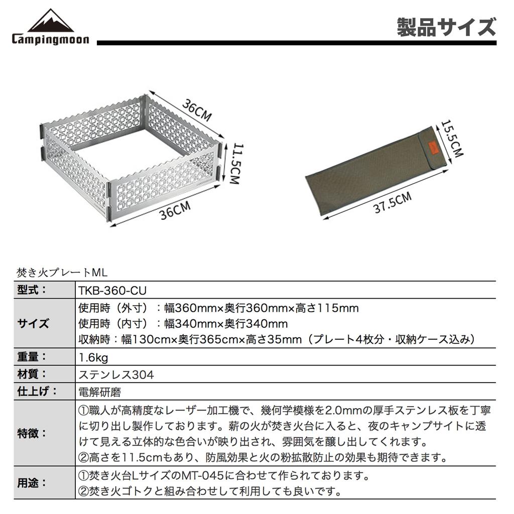 CAMPING MOON TKB-360-CU Stainless Steel Fire Plate, ML, for Campfires and Fire Pits