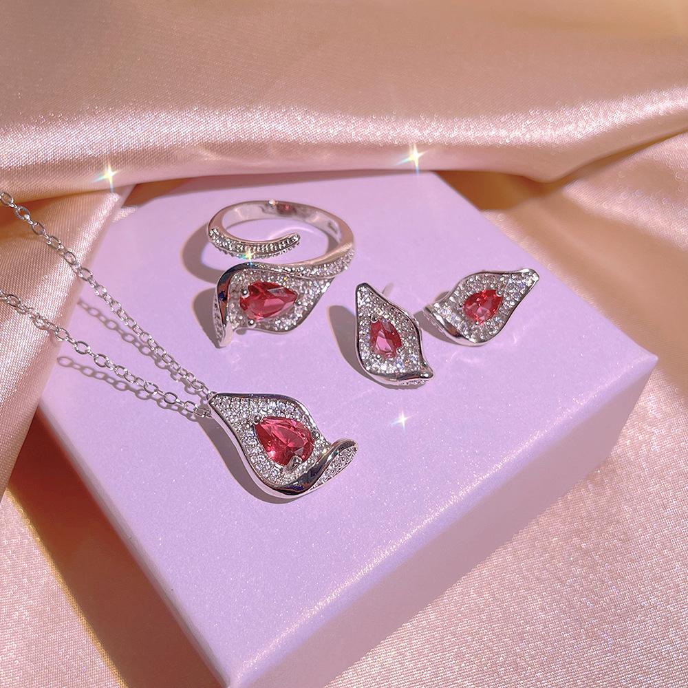 Новые женские украшения из трех частей с пробой 925, премиальная инкрустация, нерегулярный красный циркон, для вечеринки, свадьбы, подарок для невесты