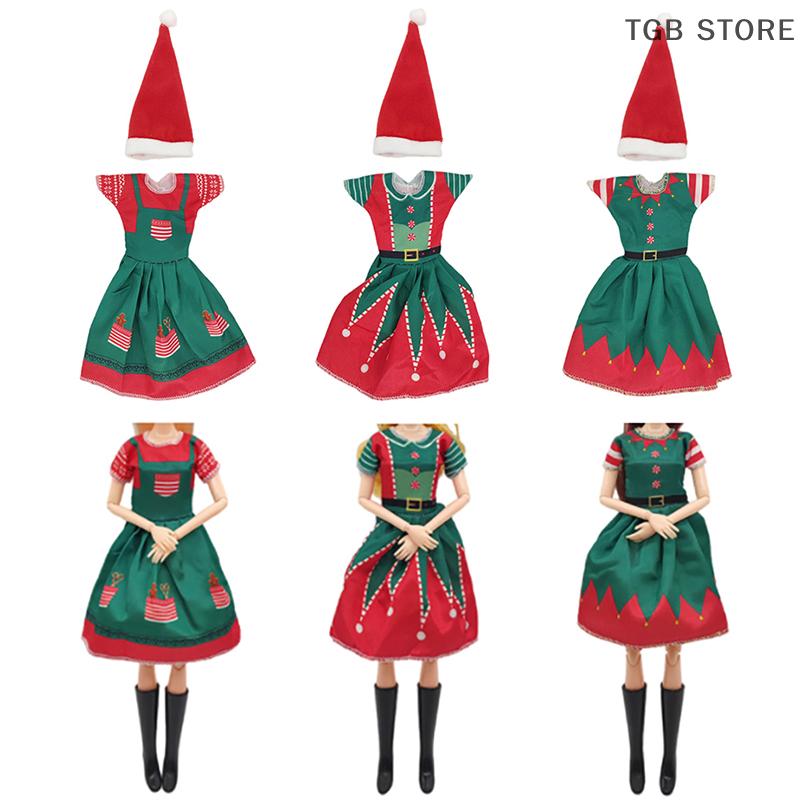 1Set Christmas Dress Outfit Dress Hats For 11 Inch 30cm Doll Fashion Clothes Doll Accessories