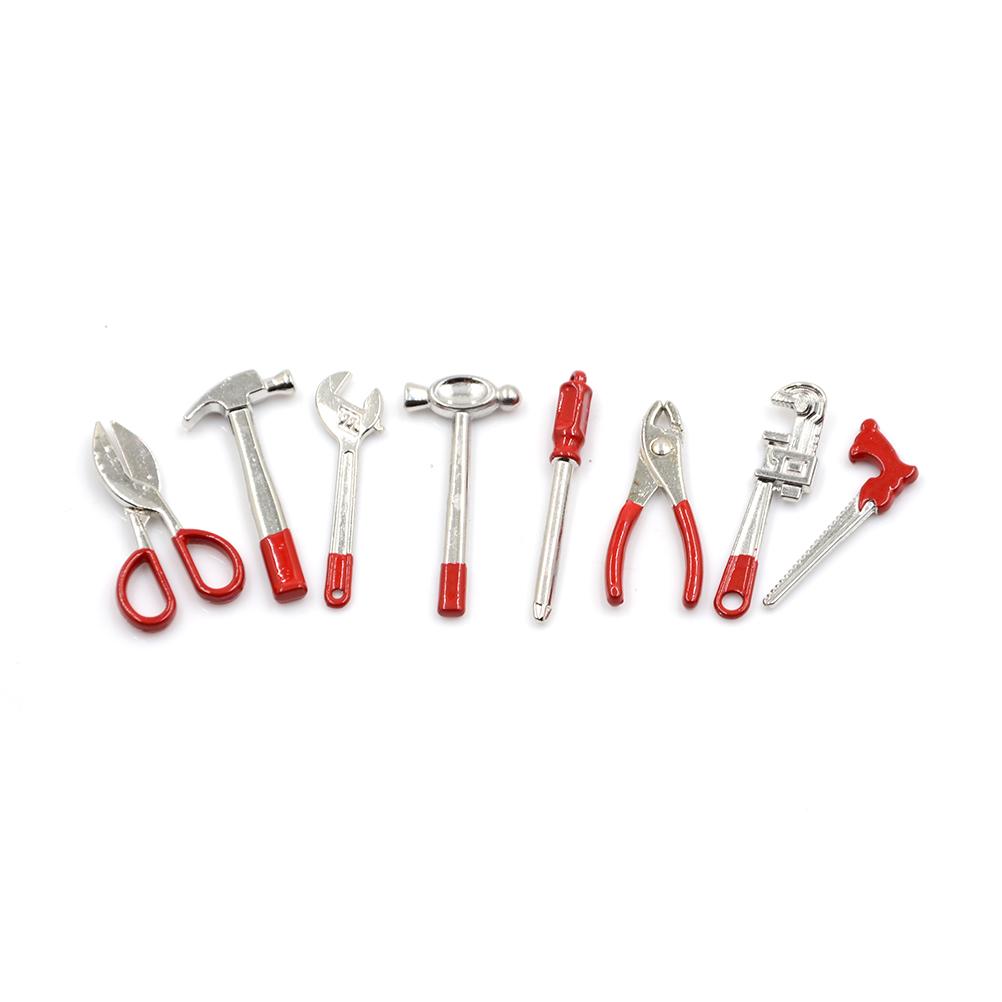 8pcs 1:12 Metal Hand Tool Set 1 Scissors/Wrench/Caliper/Screwdriver/Plier/Saw 2 Hammers 1/12 Dolls Houses Miniature