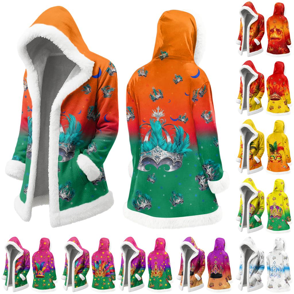 Унисекс Повседневная и Модная Куртка с Капюшоном и Длинными Рукавами с Плюшевым Воротником и Принтом Карнавала — купить товар онлайн с бесплатной доставкой по всему миру!