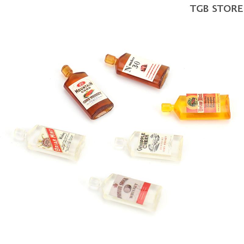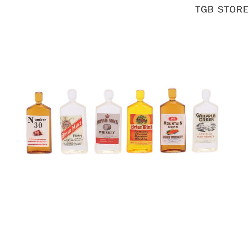 6Pcs/Set Mini Resin Whiskey Wine Bottle 1:12 Miniature Accessories