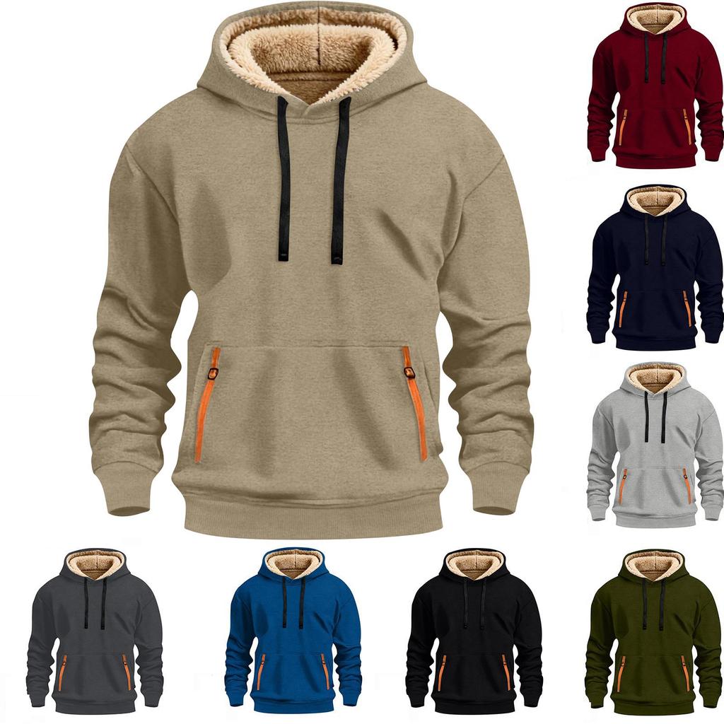 Модное мужское однотонное худи с длинным рукавом, утолщенное, на флисовой подкладке, с карманами — купить товар онлайн с бесплатной доставкой по всему миру!