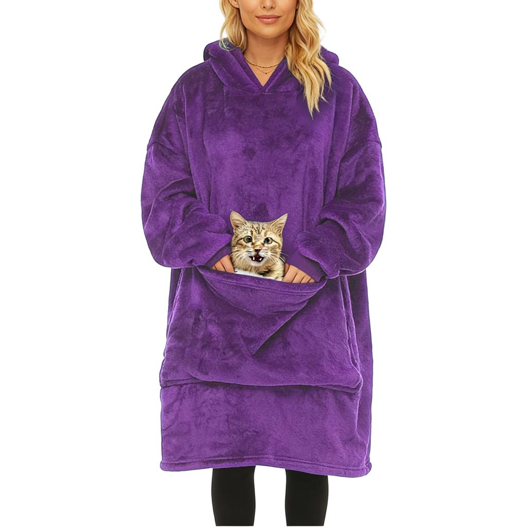 Пижама/халат из фланели с одеялом-худи, очень большой мягкий и теплый худи из шерсти ягненка с очень большим карманом для питомца.