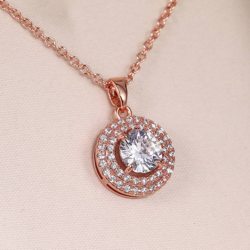 Huitan Элегантное ожерелье с подвеской для женщин, цвет розового золота, очаровательные аксессуары для вечеринки, юбилея, инкрустированные сверкающим кубическим цирконием, модная бижутерия