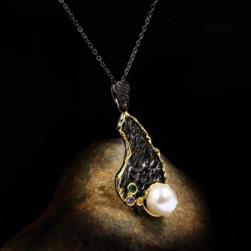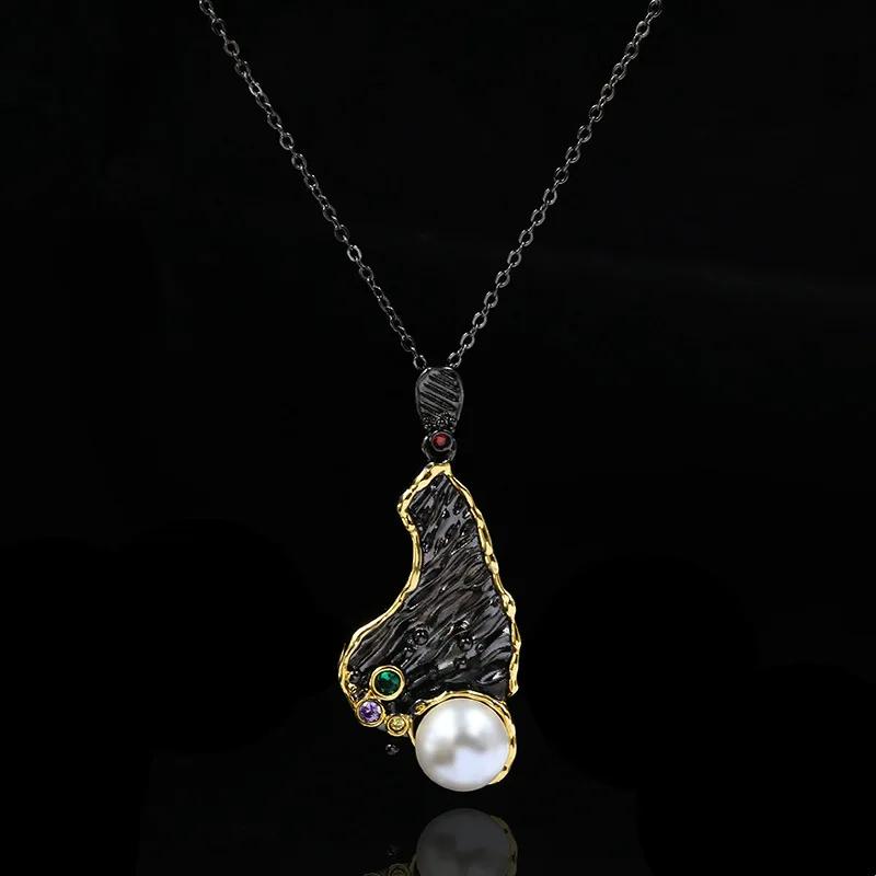 Винтажное ожерелье в богемном стиле, неправильный цветовой узор, циркон, жемчуг, серия «Черное золото», подвеска, цепочка для ключиц, женские украшения