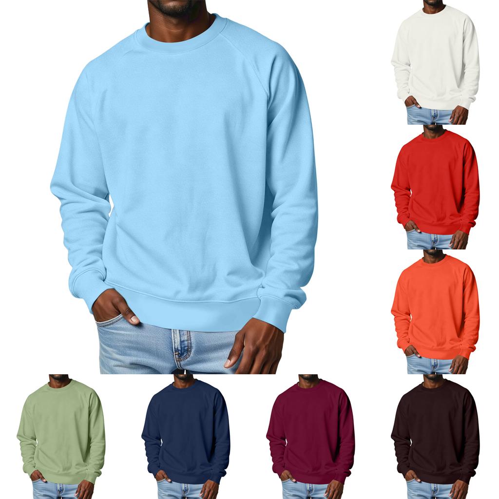 Мужской свитшот с круглым вырезом, рукавами реглан, флисовой подкладкой, плотный, однотонный