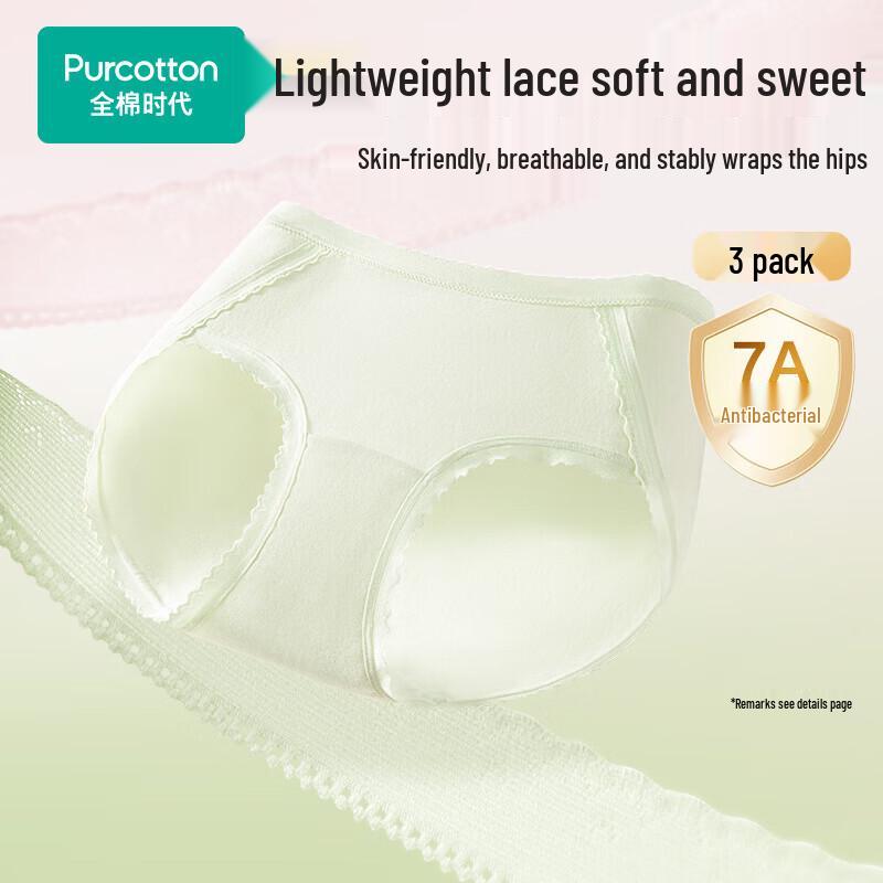 PurCotton Women's 7A Antibacterial Pure Cotton Lace Trim Underwear