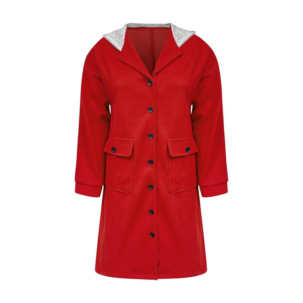 Женское однотонное длинное пальто с капюшоном и шерстяными пуговицами