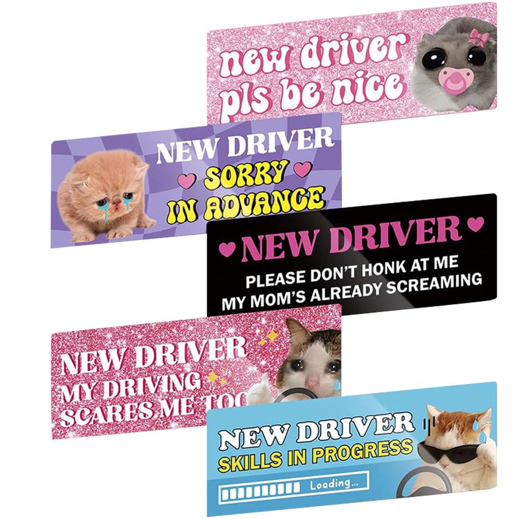 New Driver Pls Be Nice Magnetic Car Stickers, New Driver Stickers Safe, Reusable Magnetic Signs (5 Pieces)