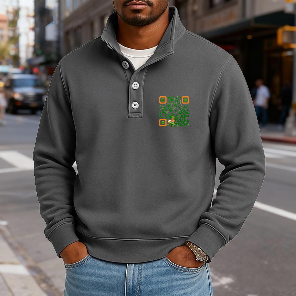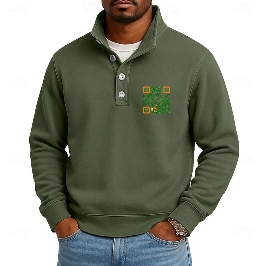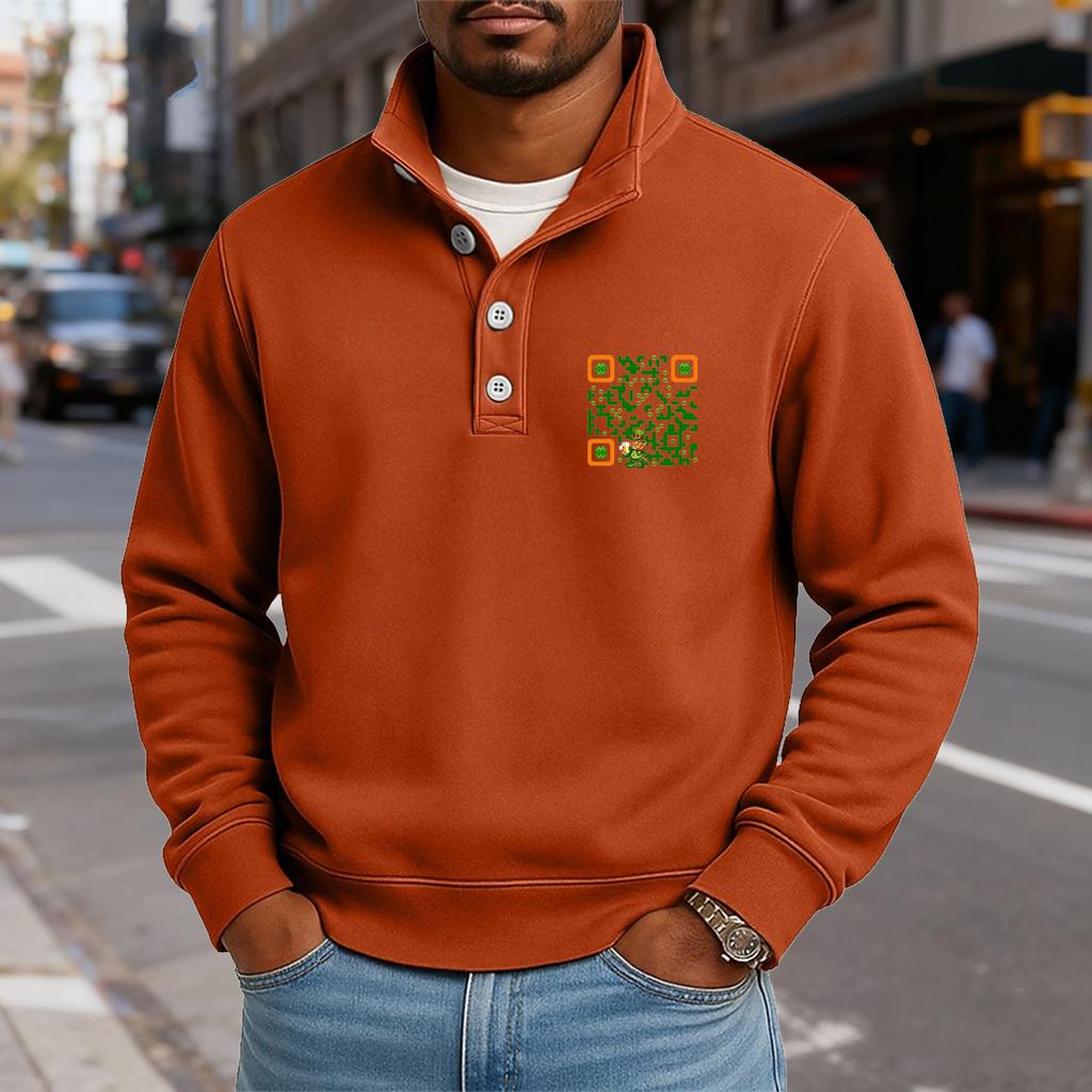 Мужской повседневный топ с воротником-стойкой и длинными рукавами, с принтом, на пуговицах, свитшот