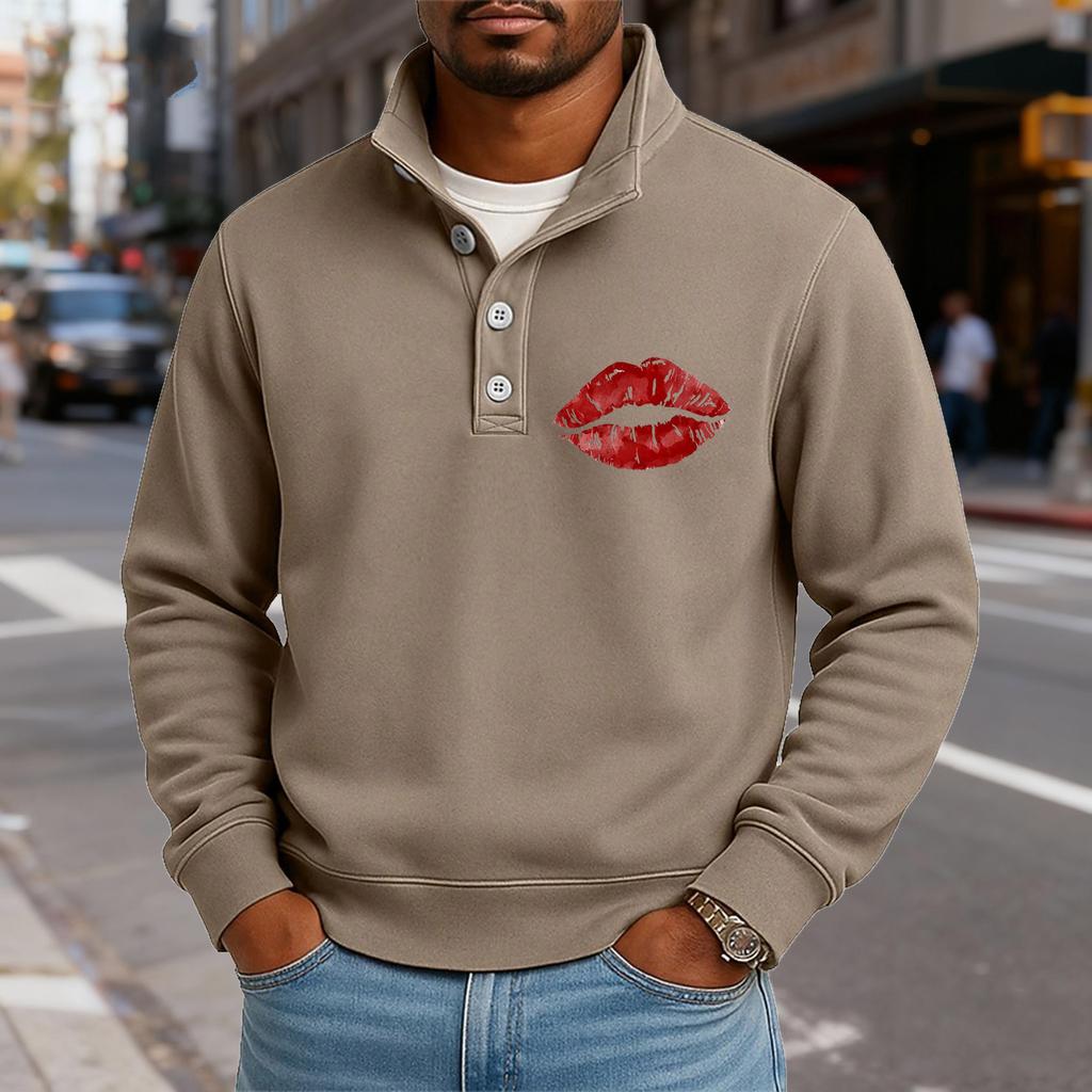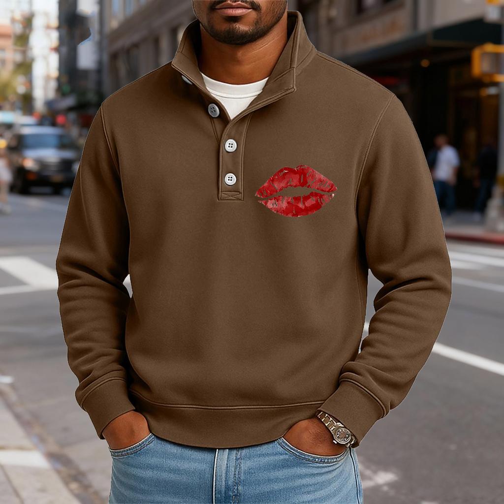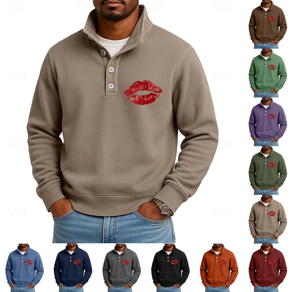 Мужской повседневный топ с воротником-стойкой и длинными рукавами, с принтом, на пуговицах, свитшот