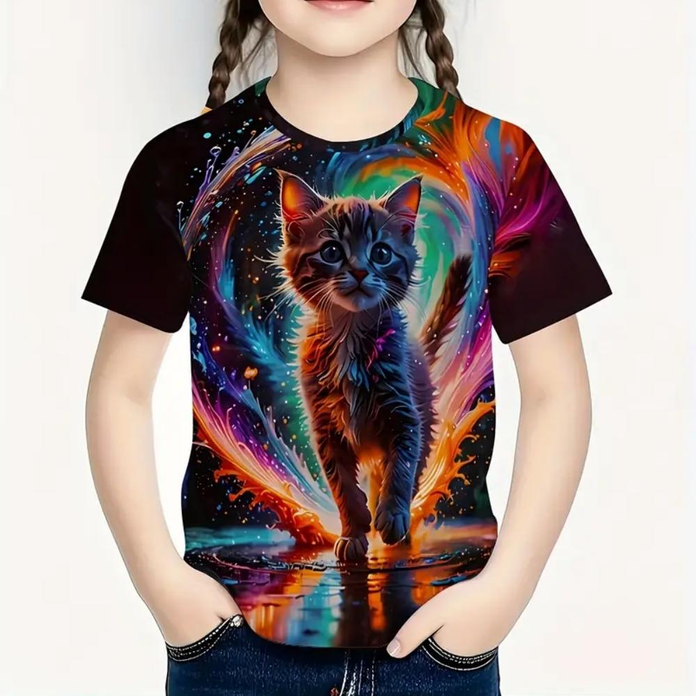 Детская одежда для девочек с принтом милого кота, футболки, летняя мода, повседневная, с круглым вырезом, с короткими рукавами, уличная футболка для девочек — купить товар онлайн с бесплатной доставкой по всему миру!