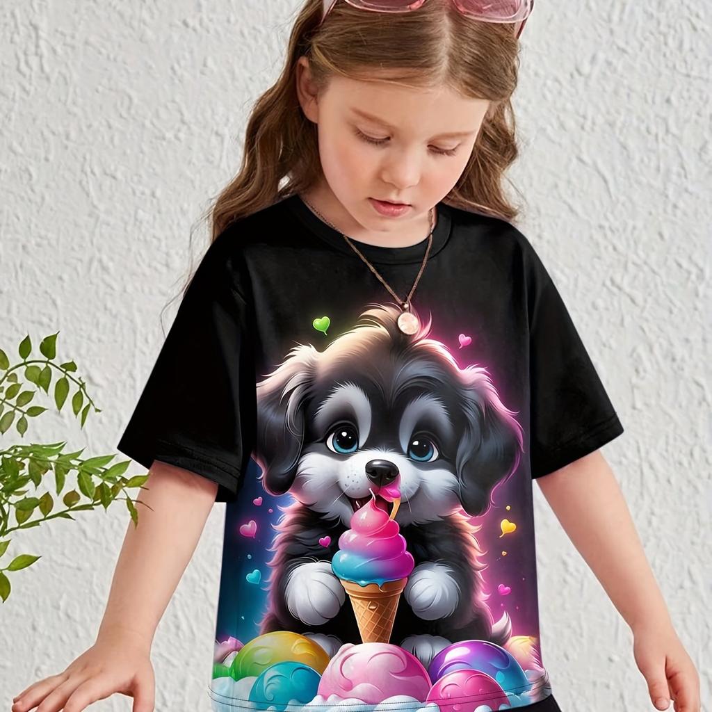 Детская одежда Одежда для девочек Футболка с коротким рукавом для девочек с принтом животных из мультфильмов Повседневная футболка с круглым вырезом для девочек Летняя детская одежда