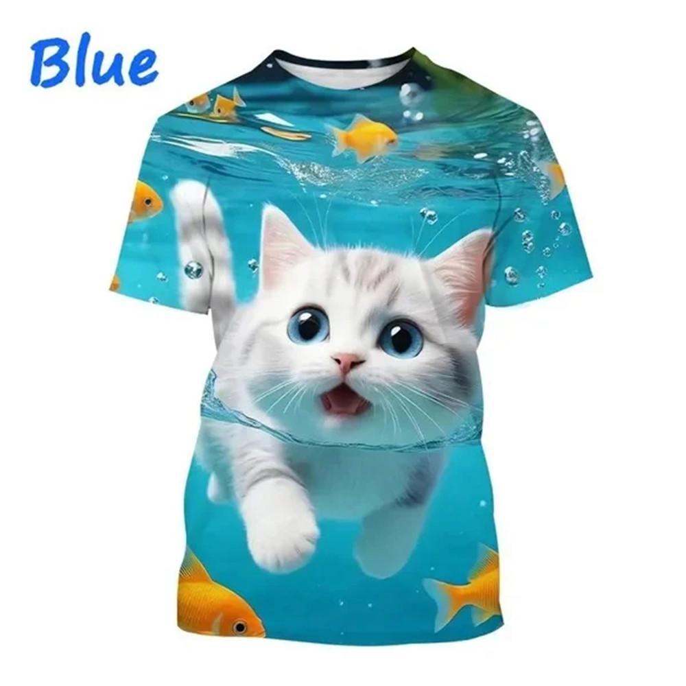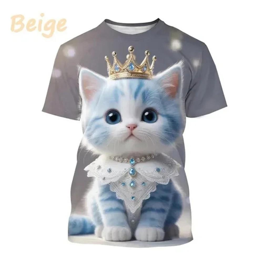 Детская футболка Милые футболки с графикой кошек Футболки с коротким рукавом Одежда для девочек Круглый вырез Детская одежда Мода Лето Детский топ