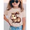 Girls Capybara Print Short Sleeve T-Shirt Cute Capybara Crew Neck Short Sleeve Tee Funny Capybara Hair Clothes Child Girl