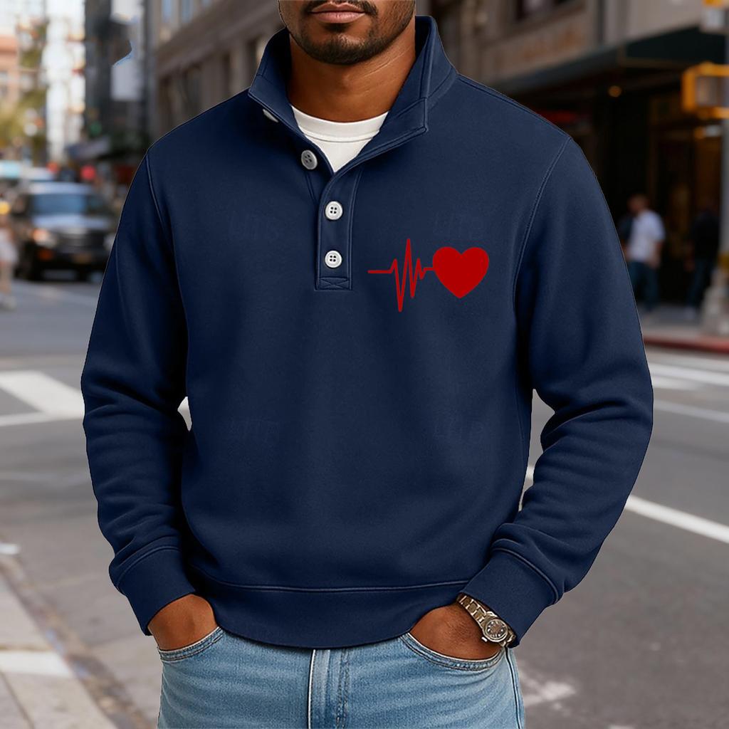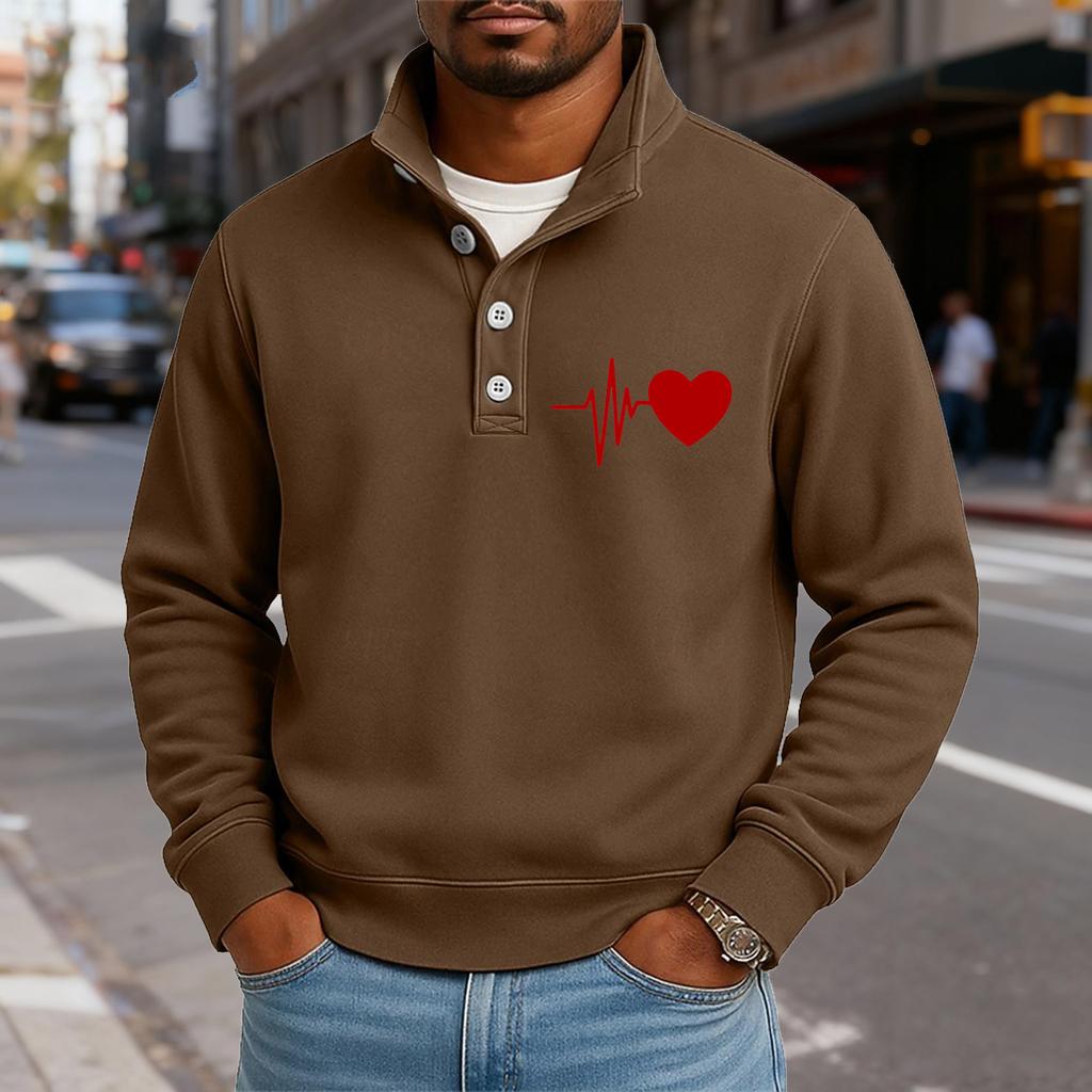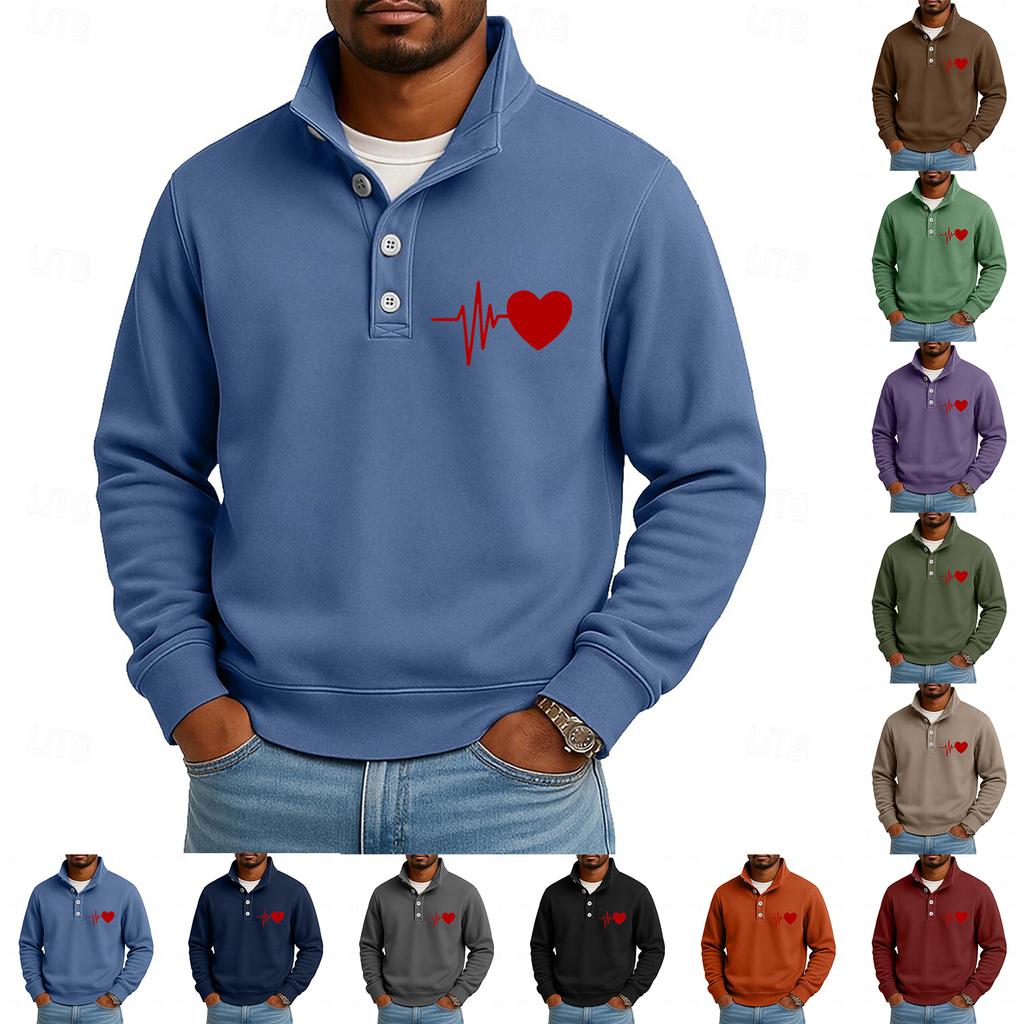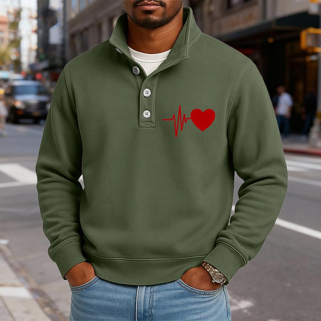 Мужской повседневный топ с воротником-стойкой и длинными рукавами, с принтом, на пуговицах, свитшот