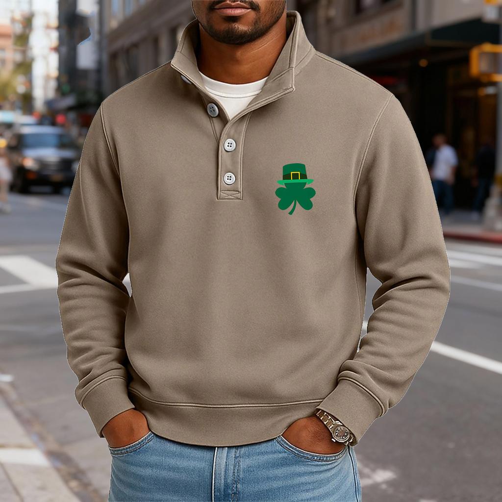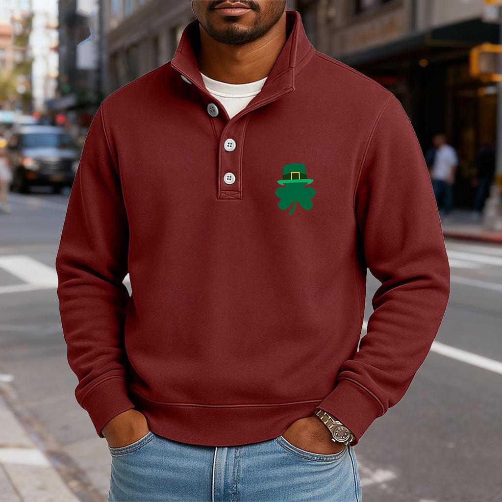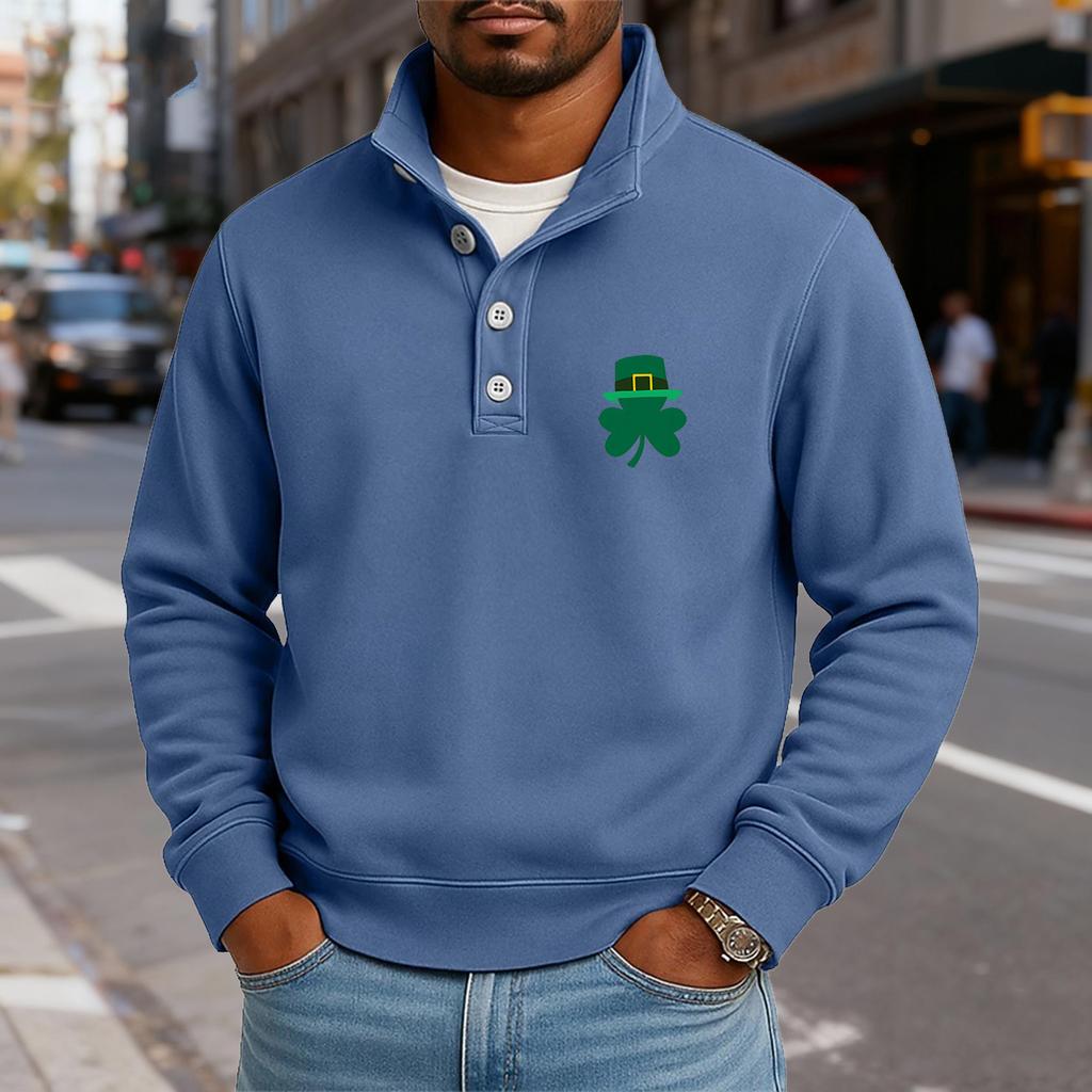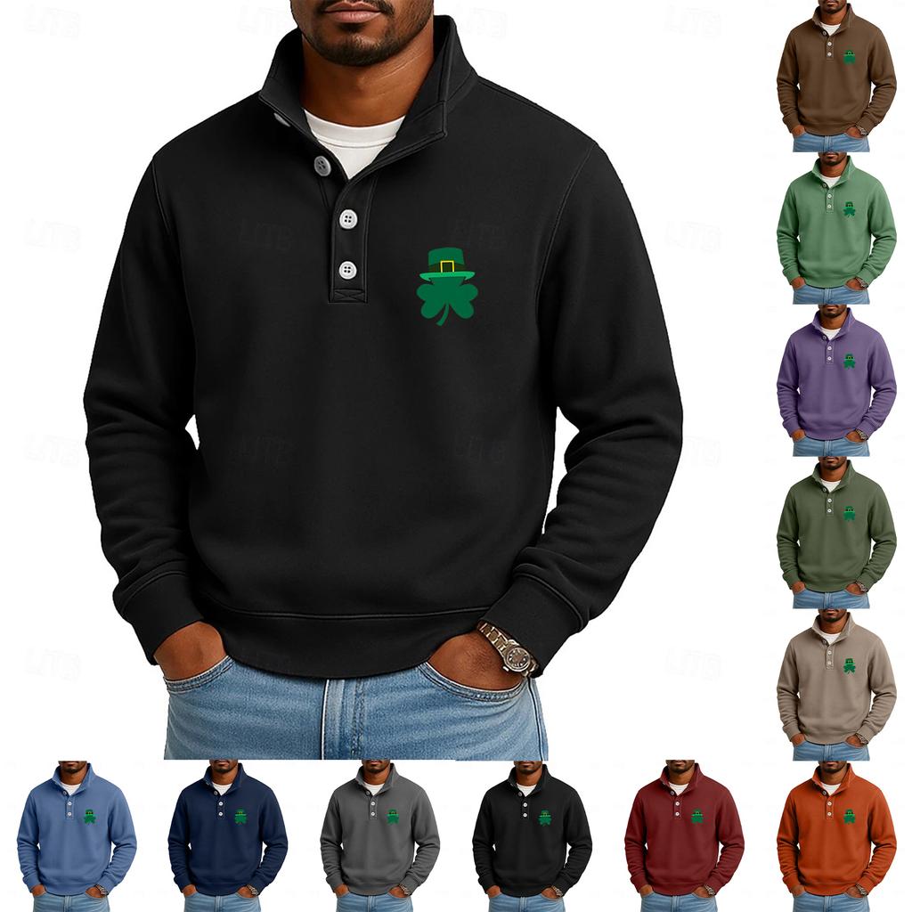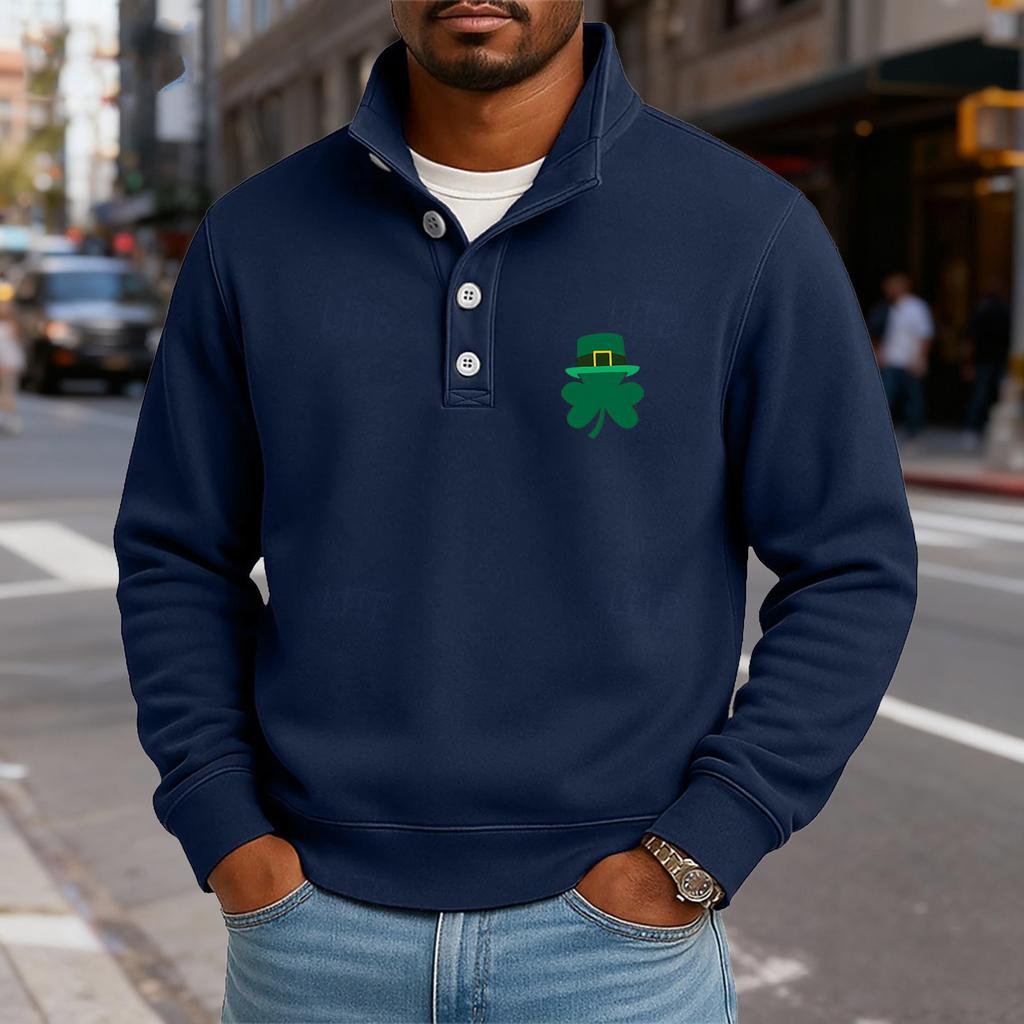 Мужской повседневный топ с воротником-стойкой и длинными рукавами, с принтом, на пуговицах, свитшот