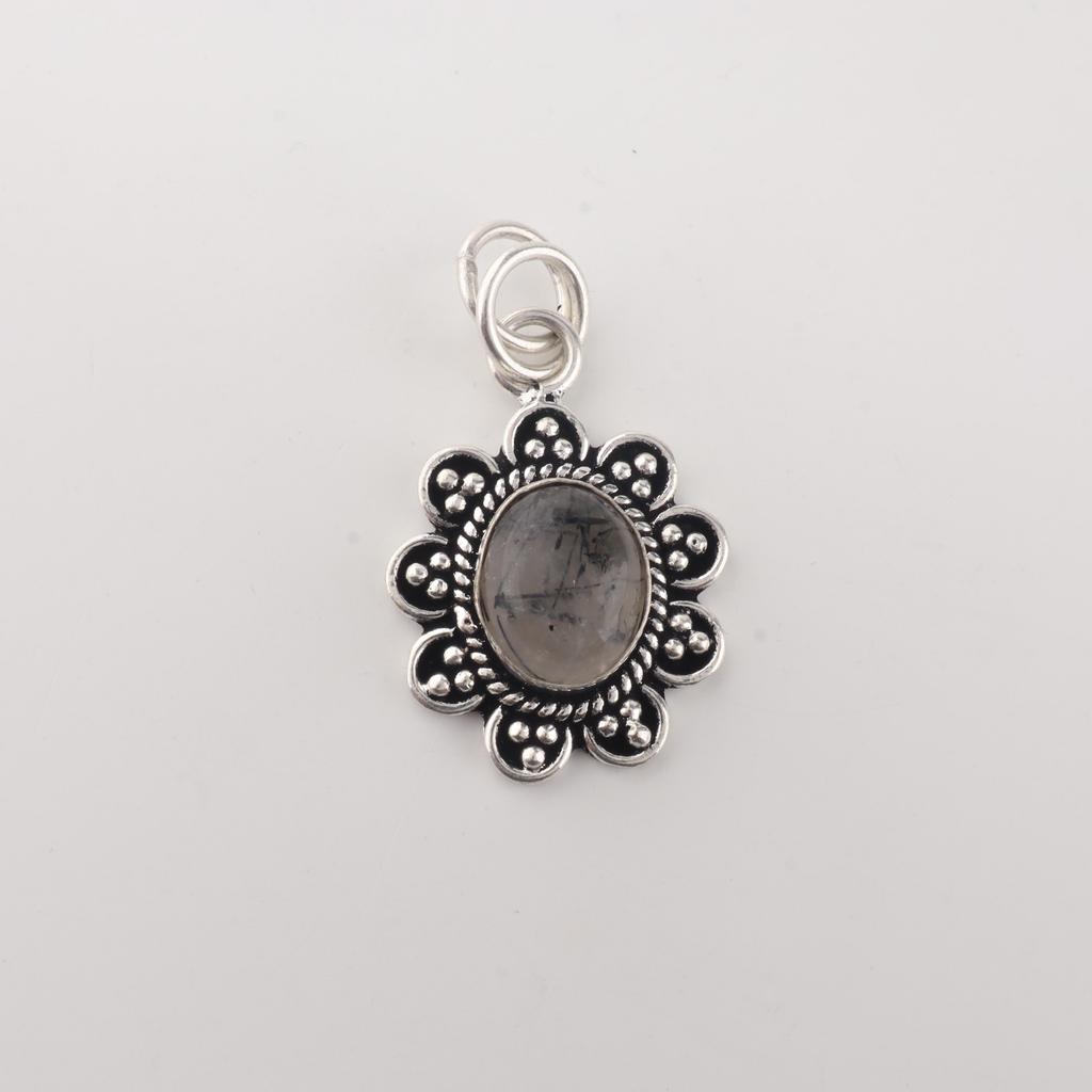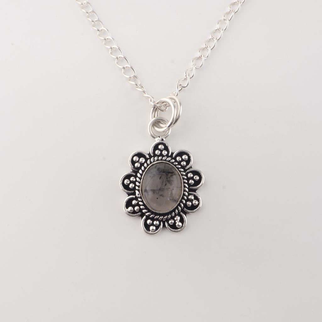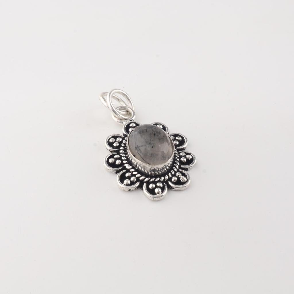 Natural Black Rutile Gemstone 925 Sterling Silver Jewelry Handmade Pendant 1.37" For Wedding Gift CP-40-22
