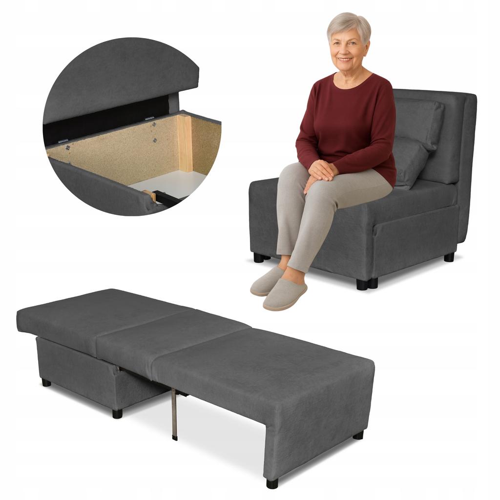 Fotel rozkładany f spania KIMO pojemnik Family Meble Hunter ciemnoszary — купить товар онлайн с бесплатной доставкой по всему миру!