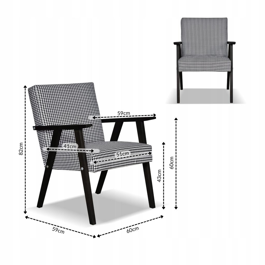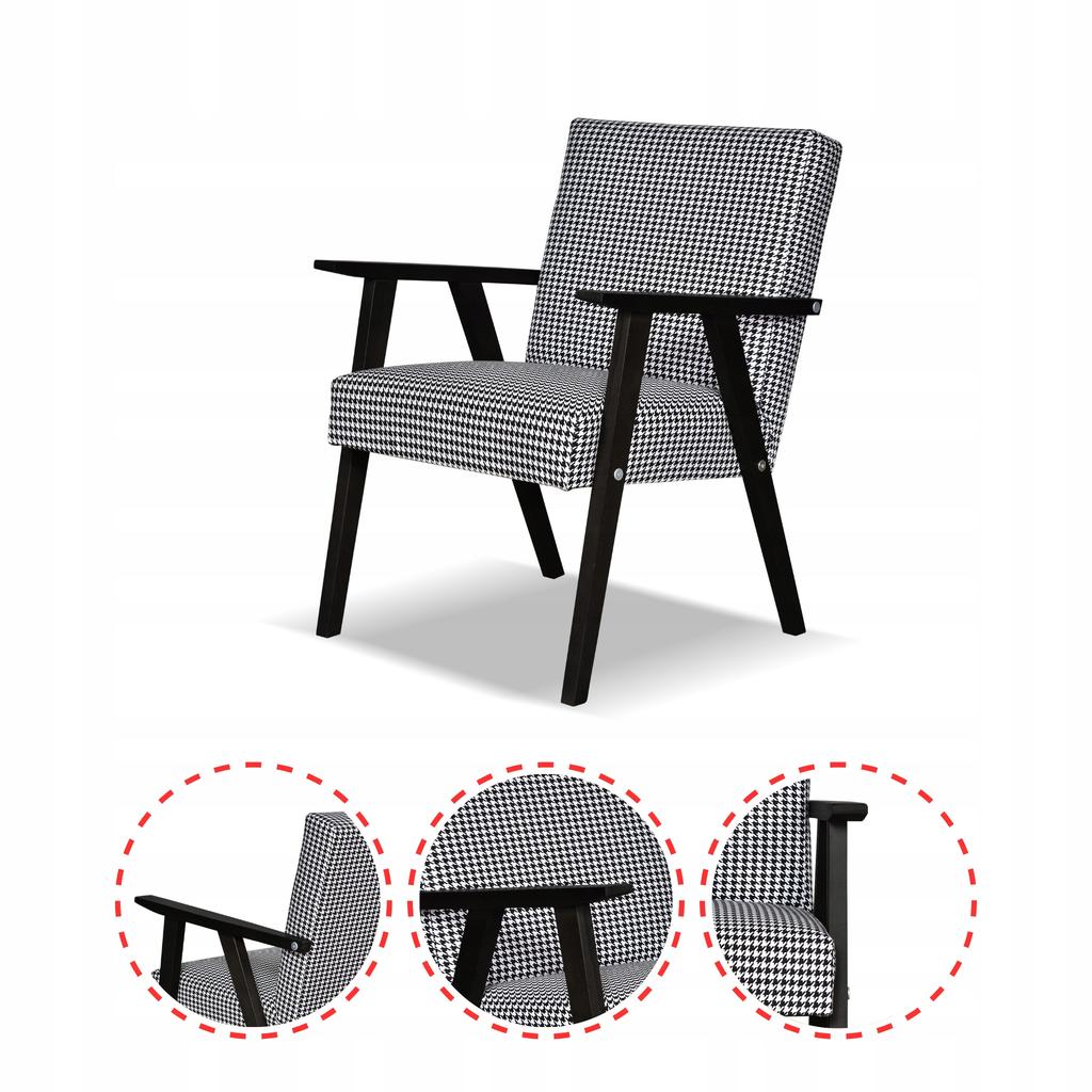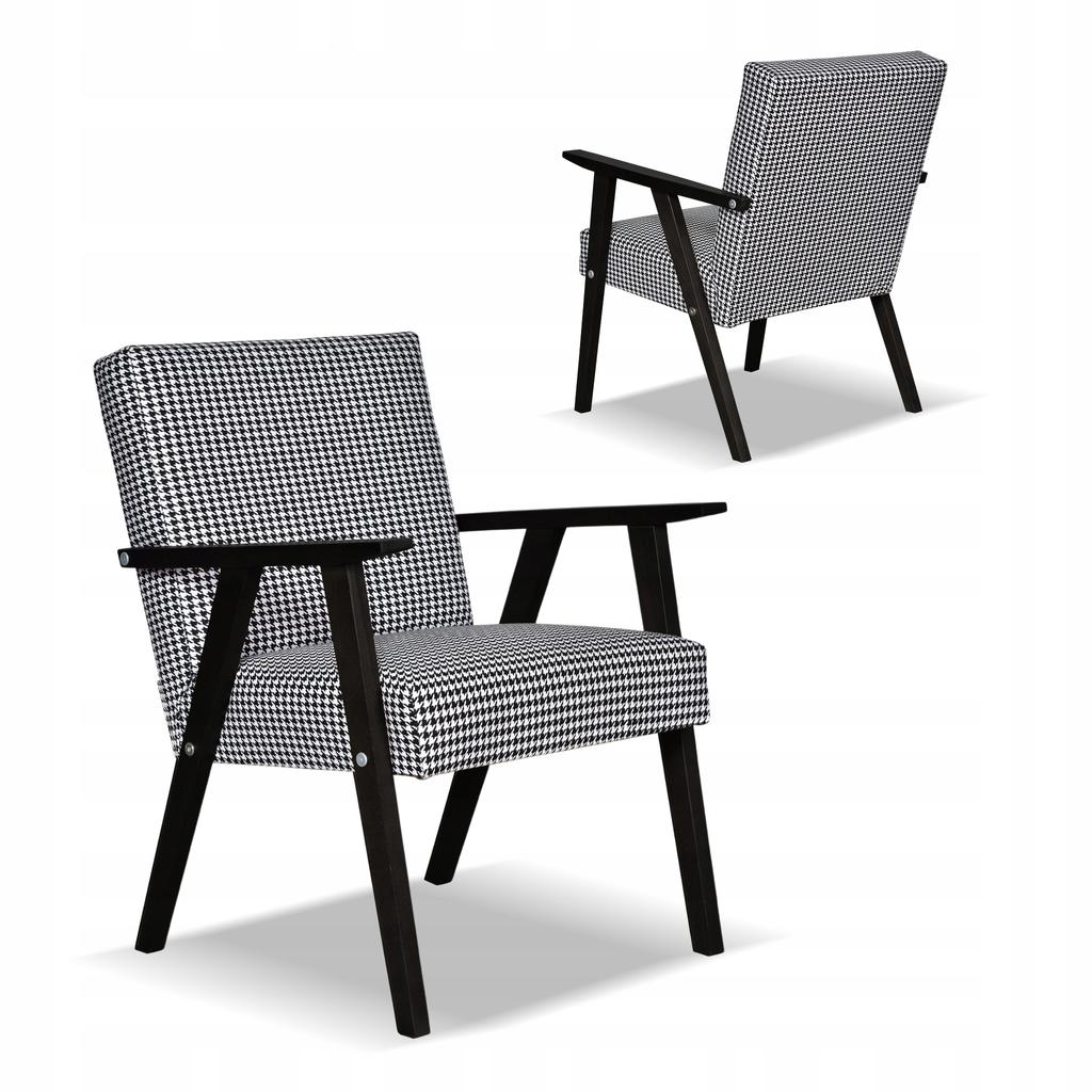 Fotel PRL zestaw retro vintage SOLER Family Meble Pepitka czarno - biała