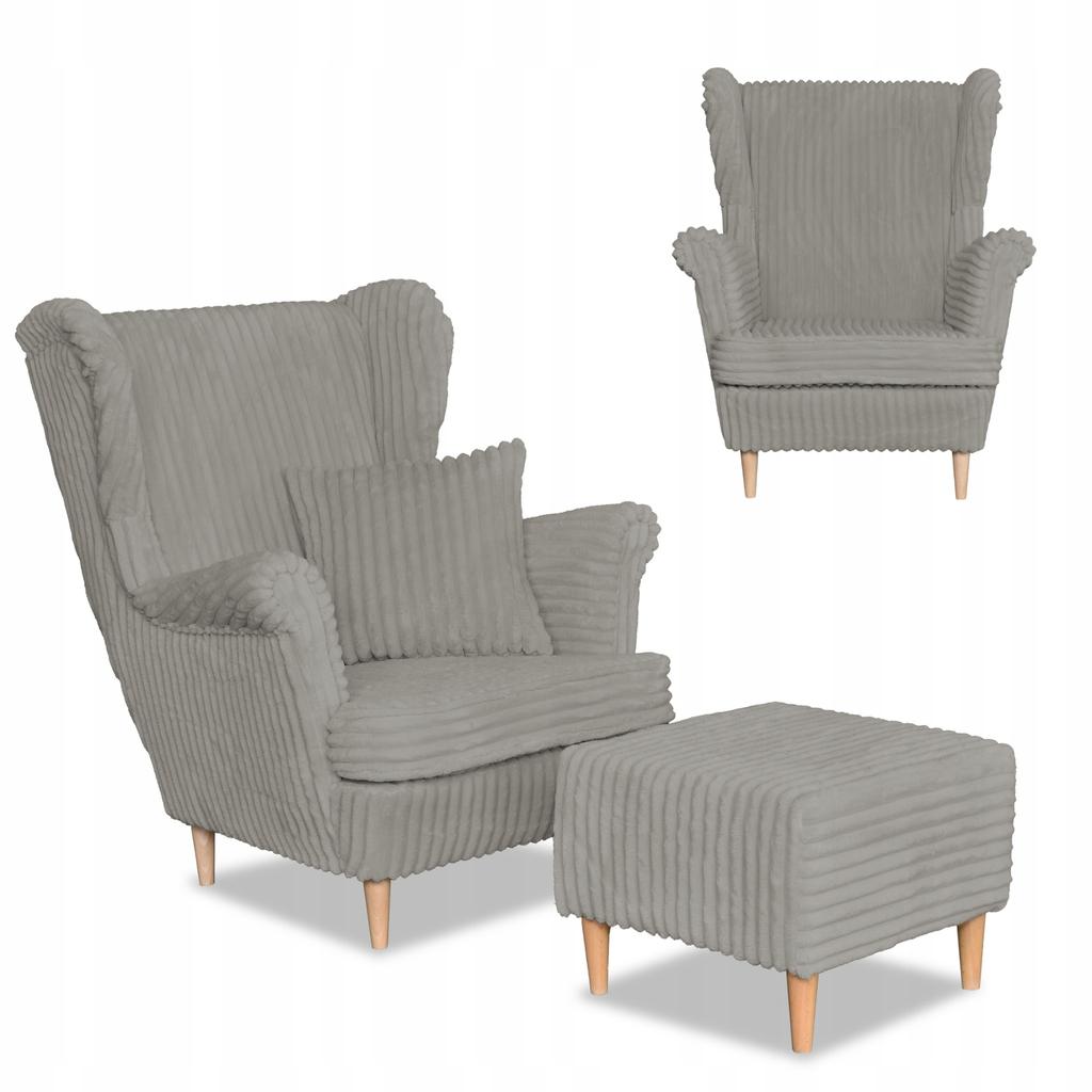 Rene wingback chair with footstool Scandinavian Family Meble grey corduroy — купить товар онлайн с бесплатной доставкой по всему миру!