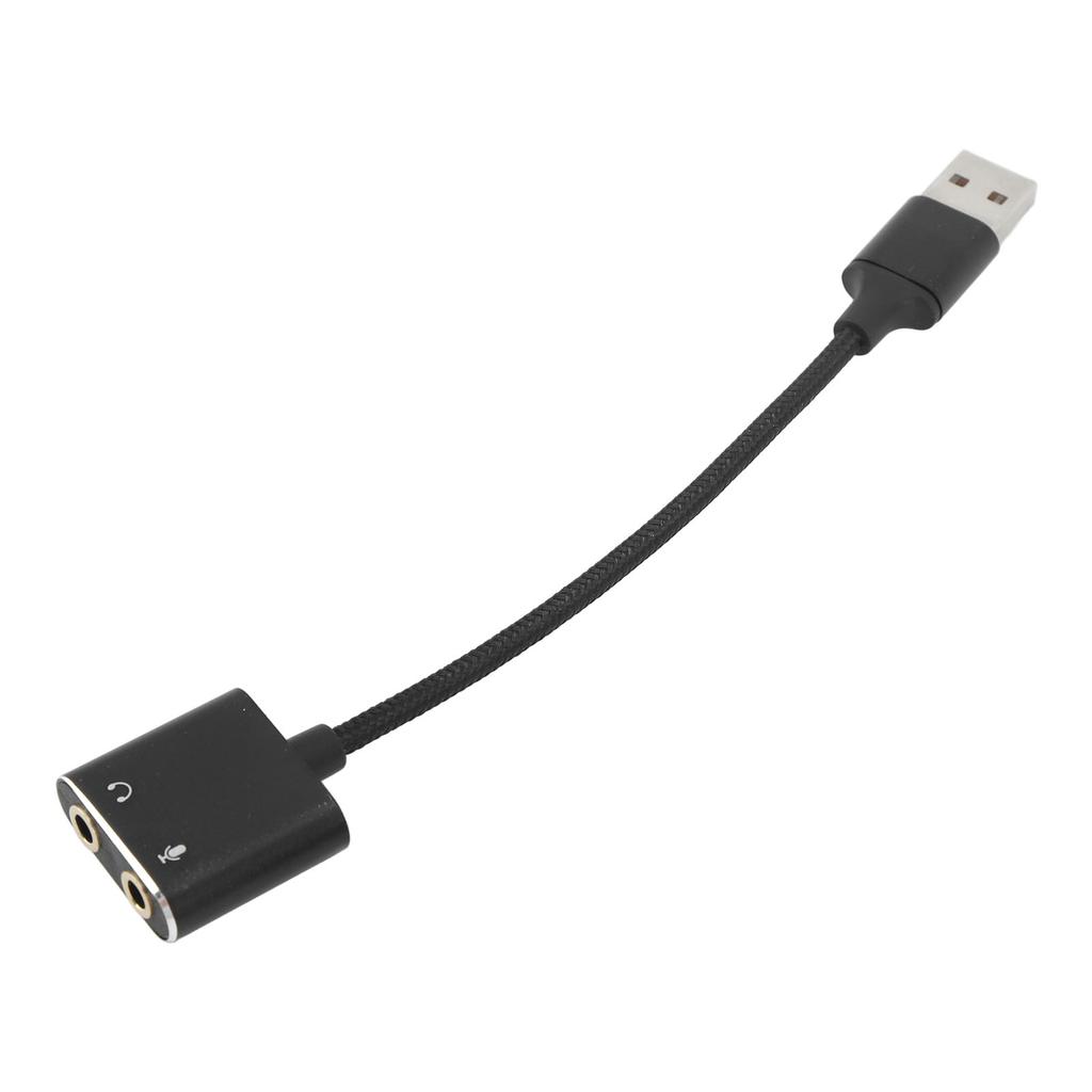USB Sound Adapter Aluminum Alloy Black Plug and Play USB to 3.5mm Jack Sound Card for Desktop Computers Laptops