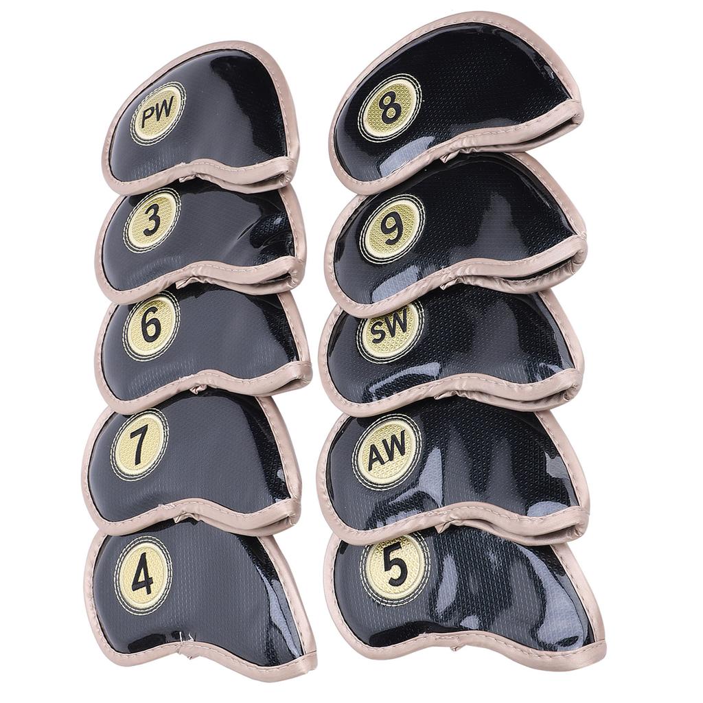 10Pcs Golf Iron Head Covers Sleeve Figure Zipper Sport Pattern Protective PU Waterproof