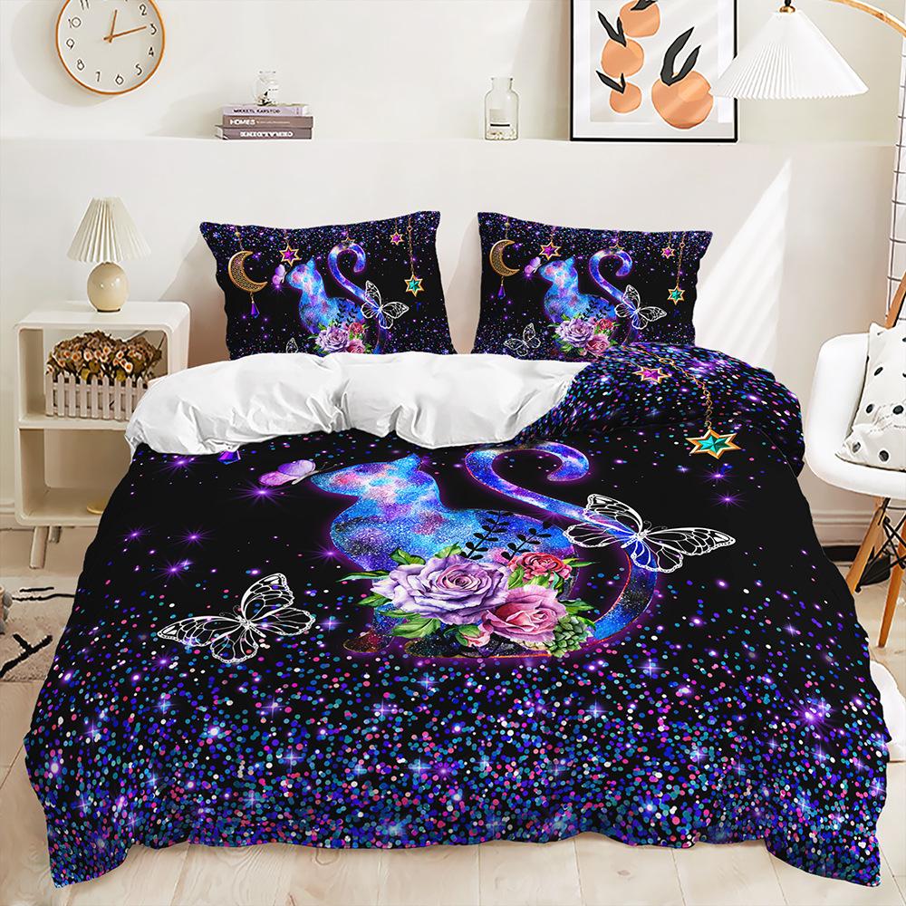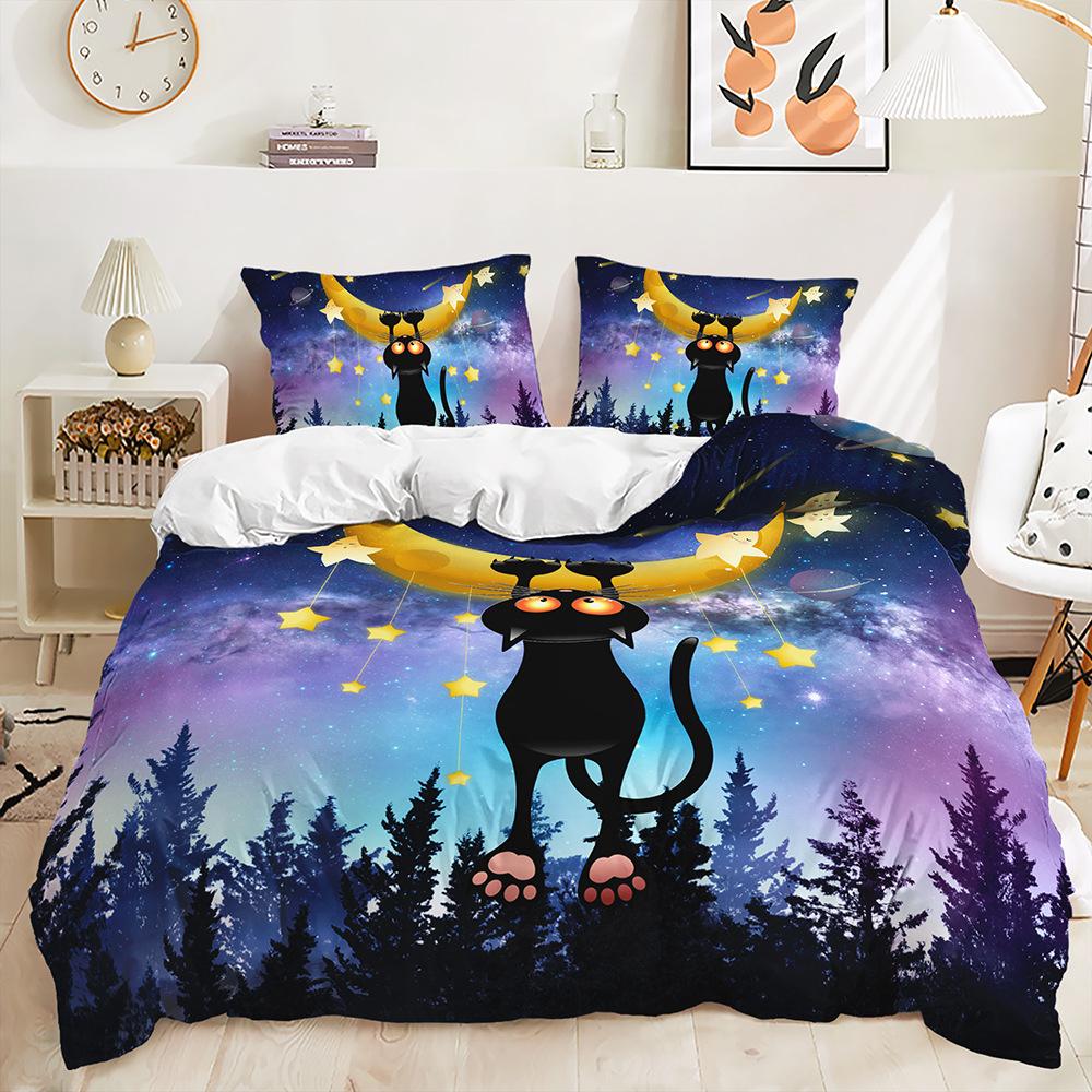 Комплект постельного белья из трех предметов с черным котом для детской комнаты