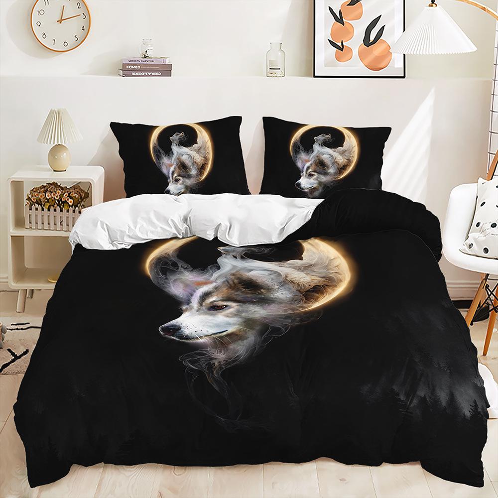 Комплект из трех предметов Покрывало с принтом волка и животных Комплект постельного белья из двух предметов