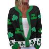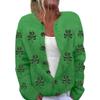 Женская мода ул.. Вязаный кардиган с длинными рукавами и принтом Патрика на пуговицах