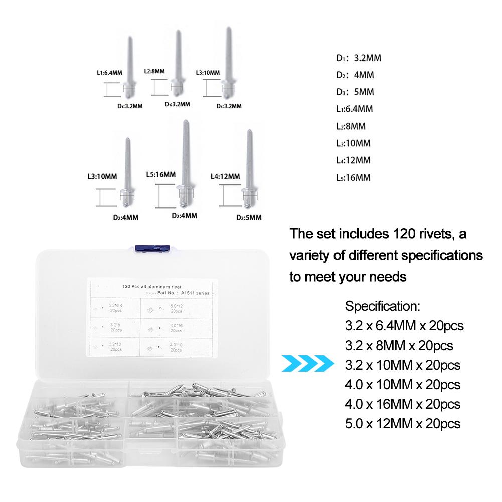120pcs Aluminum Blind Rivets Anti Rust Anti Corrosion Practical Boat Industry Accessory