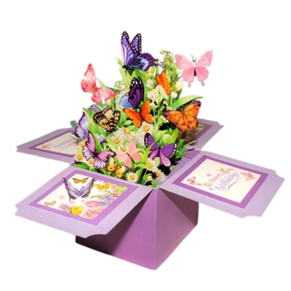 3D Patterns 3D Pop Up Greeting Card Paper Purple Butterfly Gift Box Home Ornaments