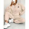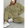 JKASHDK Женская мода повседневная весна осень однотонный принт длинный рукав О-образный вырез брюки брюки костюмы