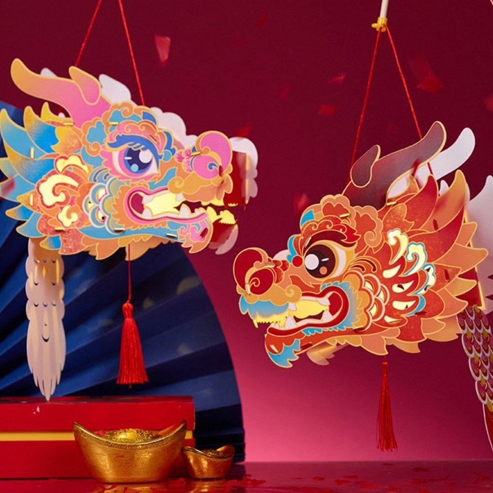 Glowing DIY Lantern Handmade Luminous Handheld Lanterns Portable Dragon Head Lantern Kids Gifts