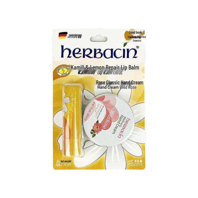 HERBACIN Lemon Lip Balm & Rose Hand Cream Set