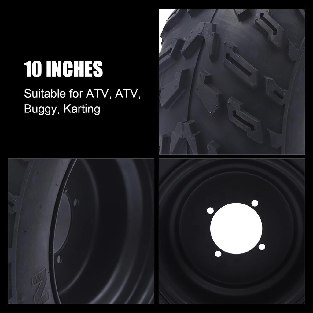 2x10-10 Шина Обод 10 Дюймов Колеса для Квадроцикла 2 для 200cc 250cc Квадроцикл UTV Внедорожные Прочные, Широкая Совместимость для Квадроциклов, Картинга Черный