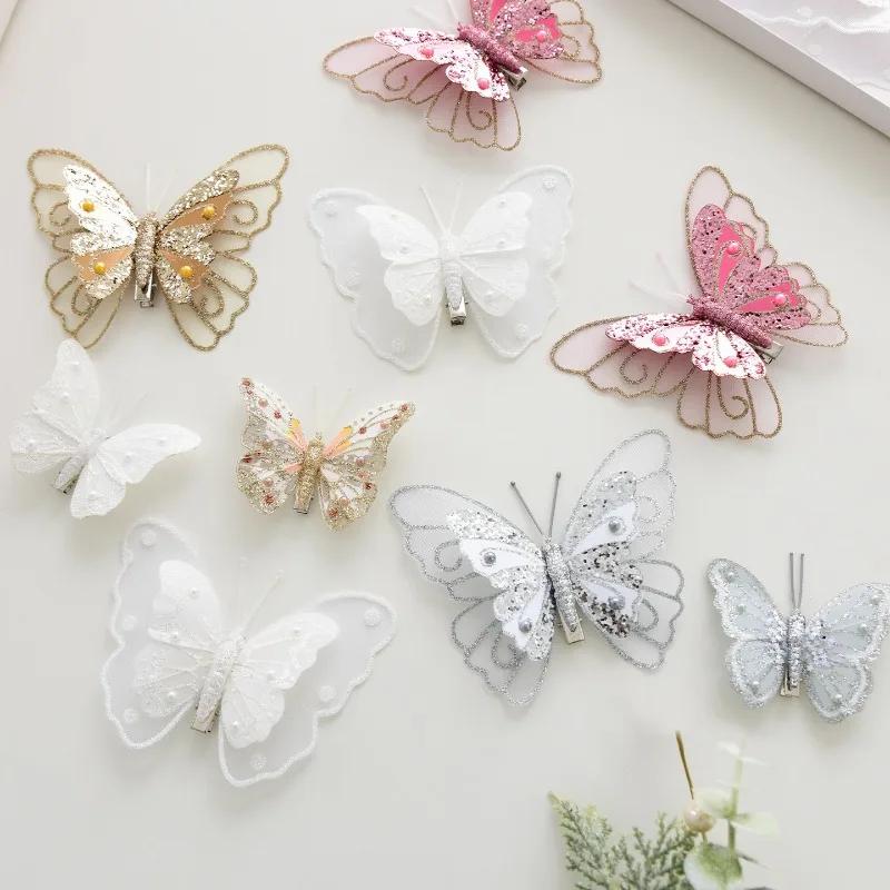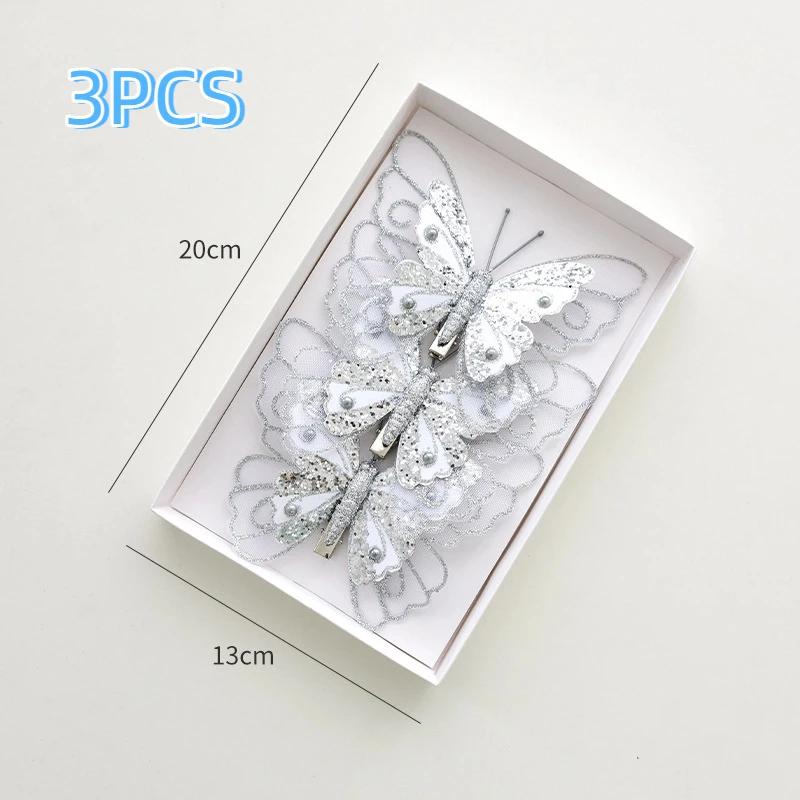 Рождественское украшение Заколка-бабочка 3/6 шт. - Имитация двухцветных пайеток, подвеска на елку и аксессуар для декора свадебной вечеринки