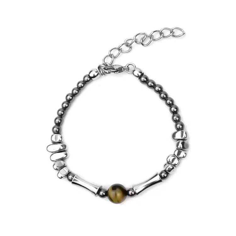 Натуральный ретро браслет из камня тигровый глаз в новокитайском стиле, гонконгский стиль, нейтральный темперамент, мужской нишевый дизайн, легкая роскошь, браслет из обсидиана